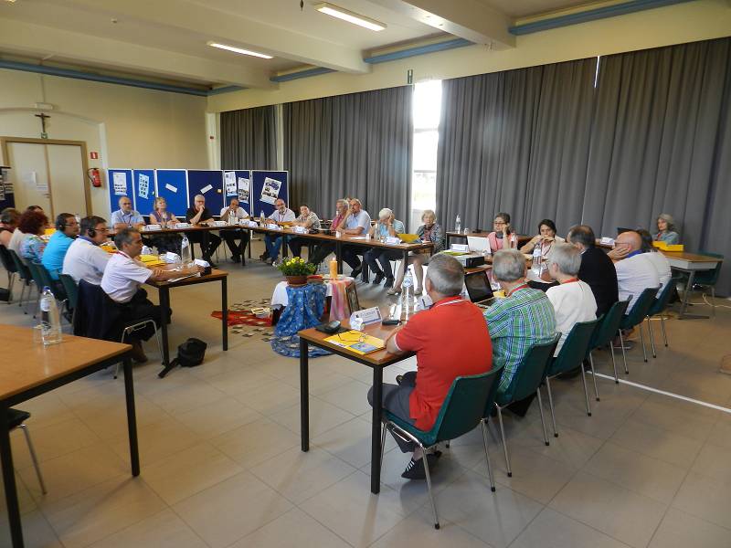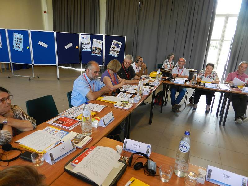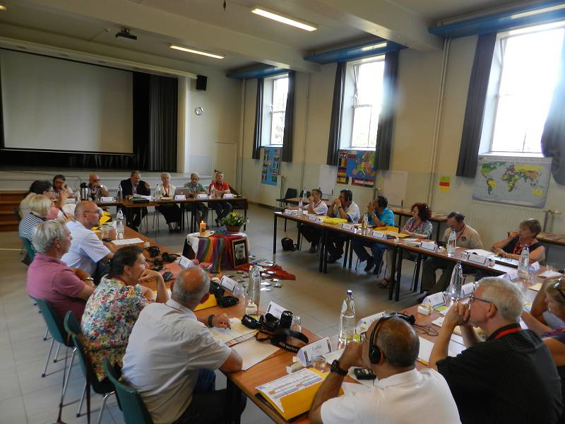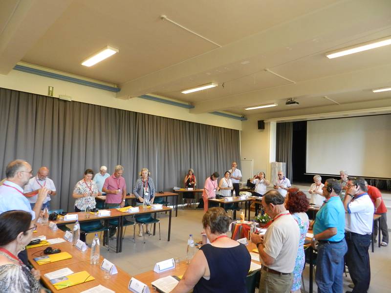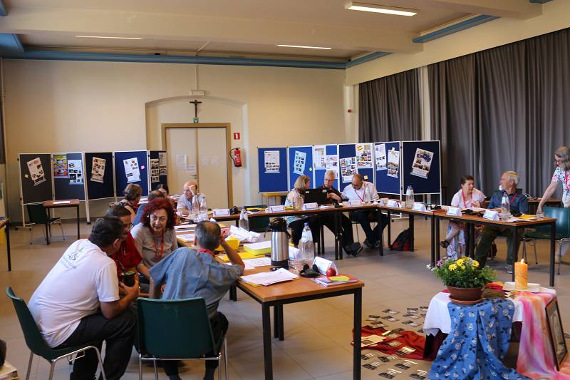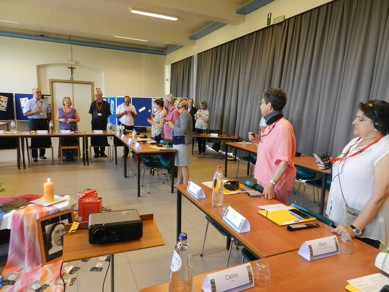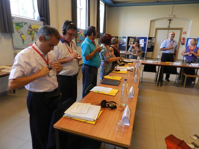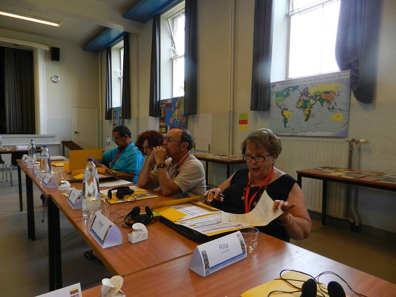 After lunch, Celso shared a message from Mozambique. Carlos Luis gave each participant a gift from Venezuela. Mike from England led us in prayer. Christian gave an update on the Recognition process by the Vatican, which is still in process. Fr. Piet reminded us that it took Father Jordan thirty years to get approval. Mike presented a proposal on the Finances. Lots of discussion ensued and the group was tasked with re-writing the proposal. We closed with a prayer led by Manuela from Spain before heading for supper.