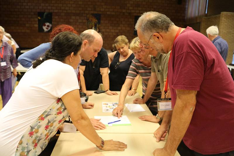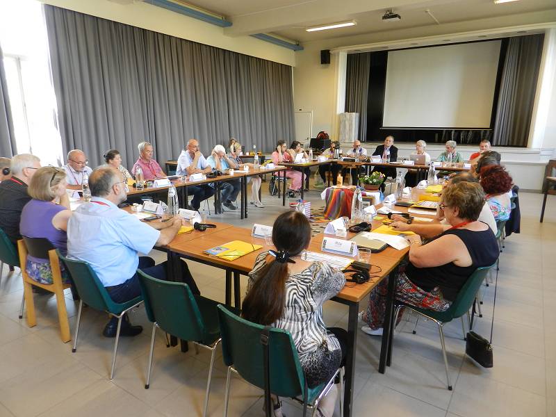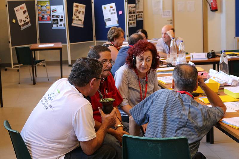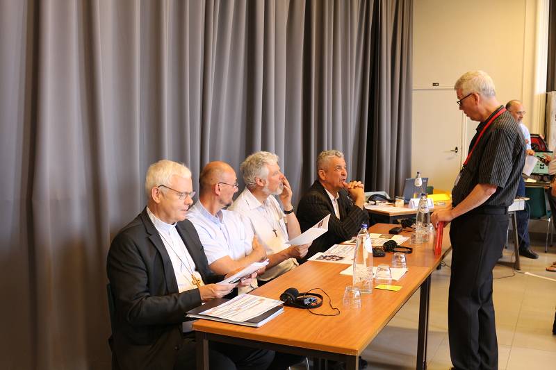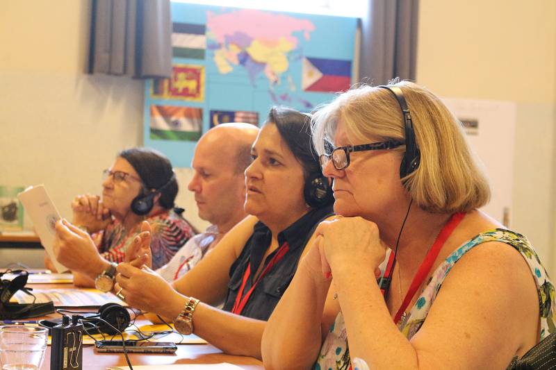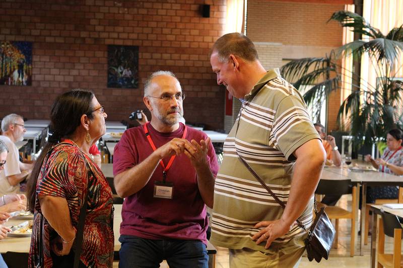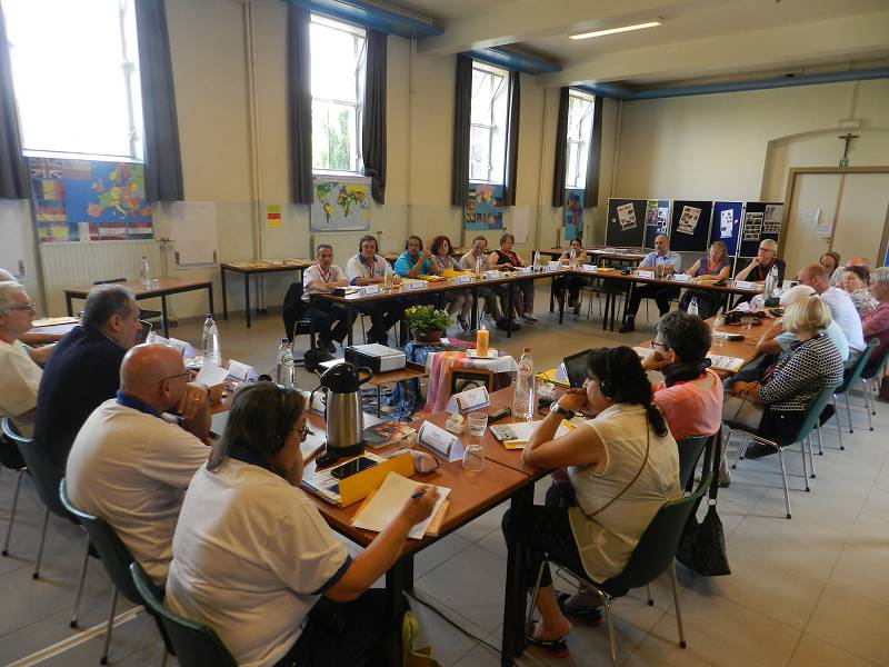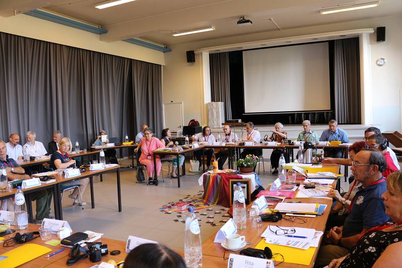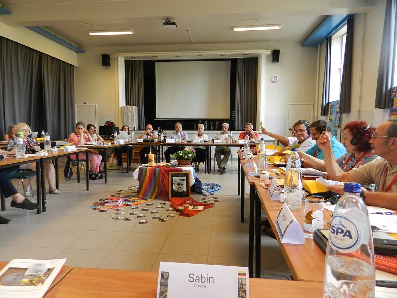After lunch, Celso shared a message from Mozambique. Carlos Luis gave each participant a gift from Venezuela. Mike from England led us in prayer. Christian gave an update on the Recognition process by the Vatican, which is still in process. Fr. Piet reminded us that it took Father Jordan thirty years to get approval. Mike presented a proposal on the Finances. Lots of discussion ensued and the group was tasked with re-writing the proposal. We closed with a prayer led by Manuela from Spain before heading for supper.